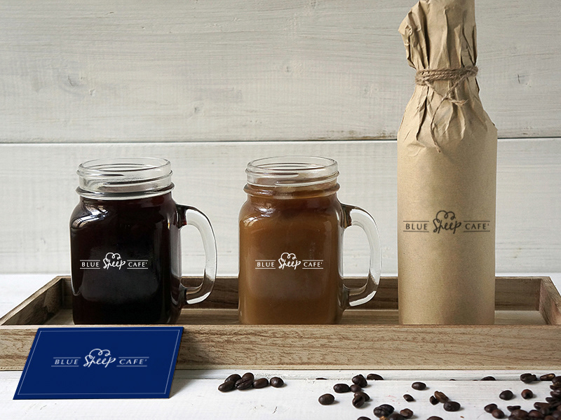 Identity design for Blue Sheep Cafe, a coffee shop at The Little PP Hometel located in Surat Thani, Southern Thailand.
