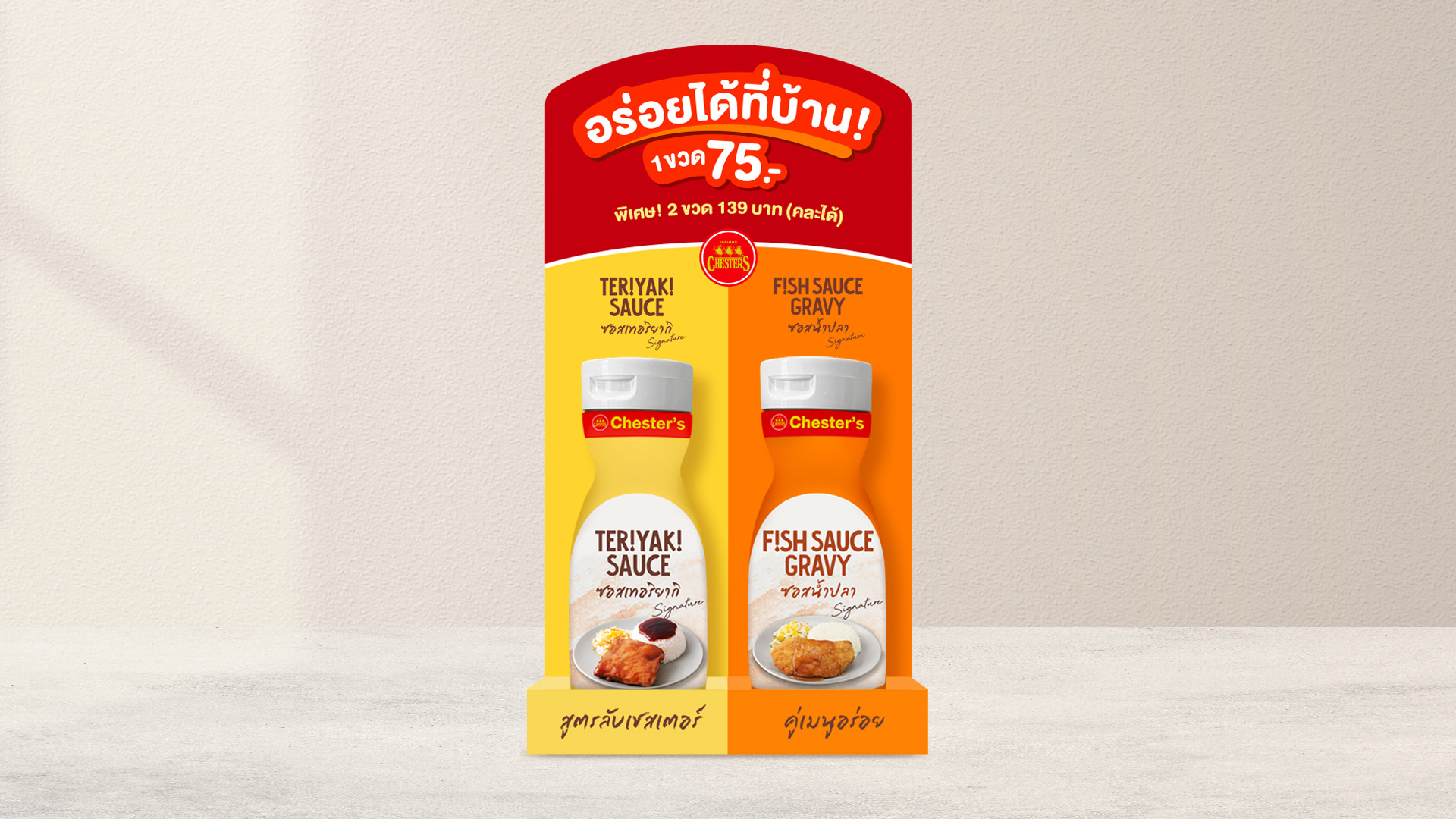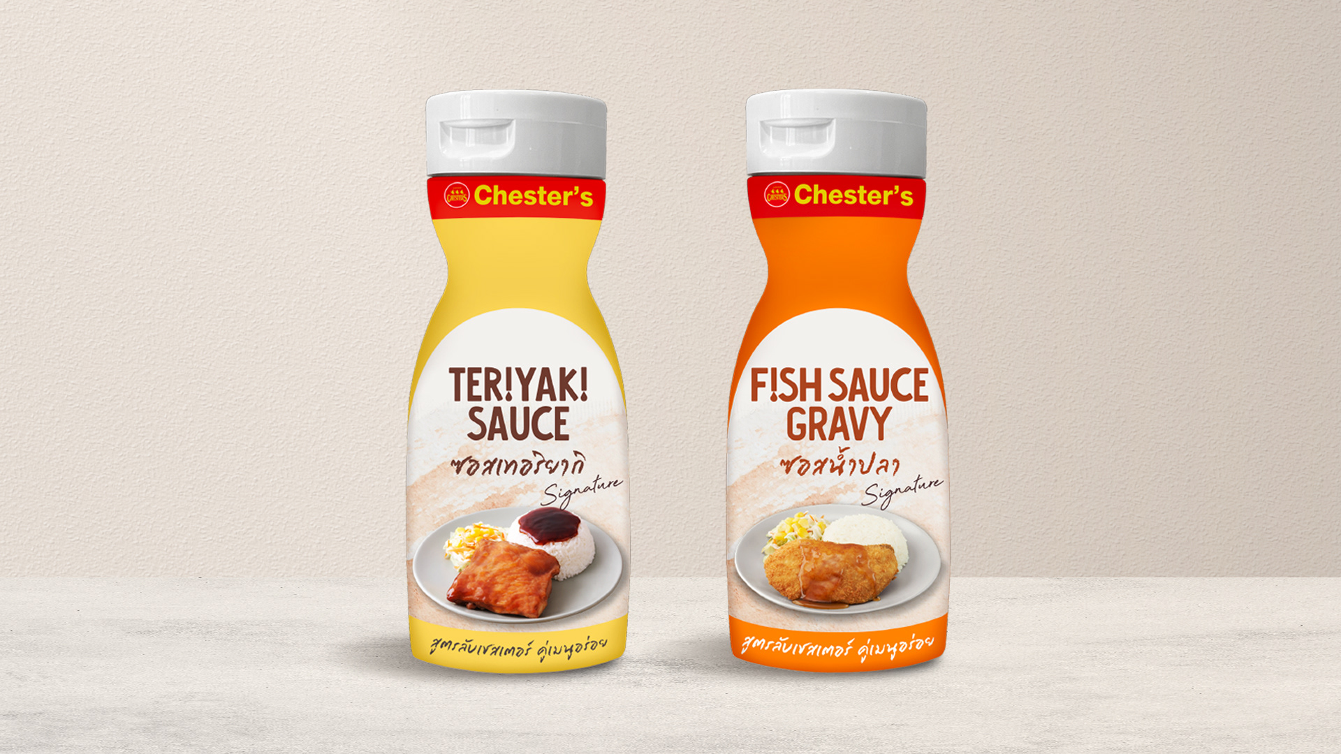 Packaging Design and Point of Purchase for the all time popular Chester's Sauce, Teriyaki Sauce and Fish Sauce Gravy.